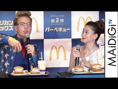 モデルで女優の河北麻友子さんとお笑いタレントの厚切りジェイソンさんが11月15日、東京都内で行われたマクドナルドの「新アメリカバーガーシリーズ」の「アメリカンデラックス」の発表会に登場した。