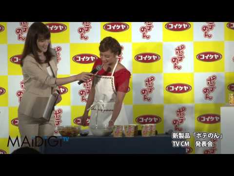 湖池屋の新商品発表会が7月16日、東京都内で行われ、CMキャラクターの平愛梨さんが出席した。平さんはエプロン姿で登場し、生じゃがいもを使用した油で揚げないポテトチップス「ポテのん」をPRした。