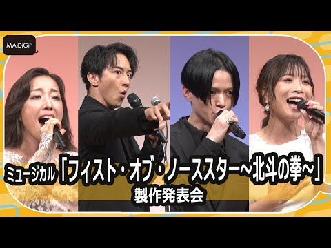 ミュージカル「フィスト・オブ・ノーススター~北斗の拳~」製作発表会が9月6日、東京都内で行われ、ケンシロウ役の大貫勇輔さん、Wキャストでユリア役を演じる平原綾香さんとMay'nさんらが出席。各キャストがメドレー形式で楽曲を披露した。