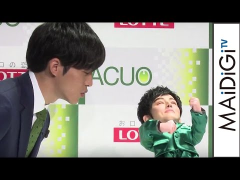 俳優の松坂桃李さんが3月28日、東京都内で行われたロッテガム「ACUO(アクオ)」の新CM発表会に登場。イベントでは、新CMで共演した松坂さんにそっくりな全長48センチ、肩幅20センチの「トーリロボ」がお披露目された。