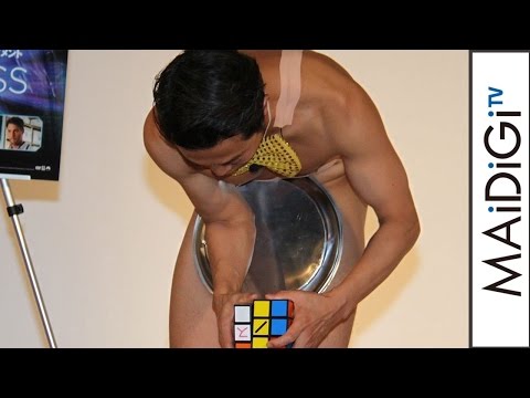 【動画】大丈夫?アキラ100%、お盆持ちながら「ルービックキューブ」に挑戦! 海外ドラマ「リミットレス」DVDボックス発売イベント2