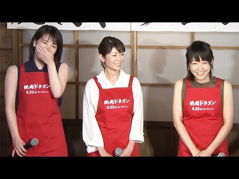 女優の真木よう子さんと井上真央さん、桜庭ななみさんが5月22日、3人が出演する映画「焼肉ドラゴン」(鄭義信監督、2018年6月22日公開)と東京・渋谷の「渋谷肉横丁」の「極肉亭 まつざか & 肉CHIKA」との期間限定タイアップ店のオープンイベントに登場した。
