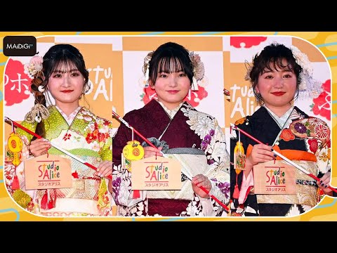子役出身で俳優の小林星蘭さん、鈴木梨央さん、谷花音さんが1月9日、東京都内で行われた「スタジオアリス成人式振袖レンタル&前撮りパック“ふりホ”PR イベント」に、振り袖姿で登場した。来年の成人式に向けて、小林さんは「成人式の日に自分が二十歳としてふさわしい姿になれているように頑張りたい」、鈴木さんは「憧れの気持ちがある」、谷さんは「成人式、二十歳というものが近づいているなって日々実感している」とそれぞれ心境を語った。