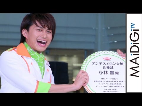 俳優で、東海エリア発の男性10人組ユニット「BOYS AND MEN」(ボイメン)のメンバーの小林豊さんが「アンデスメロン大使」に就任し5月9日、東京都内で行われた就任発表イベントに登場した。メロンカラーのエプロンを巻いたパティシエ風衣装の小林さんは2013~14年に放送された特撮ドラマ「仮面ライダー鎧武(がいむ)」(テレビ朝日系)でバナナモチーフの仮面ライダーバロンを演じていたこともあり、「僕の印象はバナナなのかなと思っていた」と就任に驚きながらも、「これからは、僕の体内の水分は、ほぼメロン果汁になると思います!」と、独特の表現で喜びを爆発させた。
