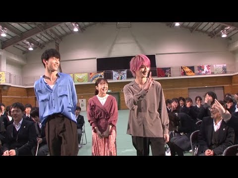 この日は、映画のメインロケ地となった横浜市への恩返しとして3人が同校を訪問。撮影中の横浜でのエピソードや中学時代の思い出を語り、卒業生に向けてメッセージを送った。