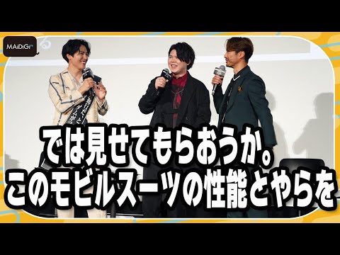 舞台あいさつでは、劇場先行版のシャアのセリフの人気投票企画の結果を発表。「では見せてもらおうか。このモビルスーツの性能とやらを」「君なら出来る。私のカンだ」「ガンダム、出る」「モビルスーツの迎撃には私が出る」の中から。「では見せてもらおうか。このモビルスーツの性能とやらを」が1位に選ばれ、新さんが同セリフを生披露した。