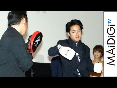 俳優の溝端淳平さんが4月12日、東京都内で行われた主演映画「破裏拳(はりけん)ポリマー」(坂本浩一監督)の完成披露舞台あいさつに登場した。主人公で拳法・破裏拳を駆使する鎧(よろい)武士を演じる溝端さんは、この日はスーツ姿で登場したが、グローブをはめてステージ上で“破裏拳”を生披露。坂本監督がはめたミットへ巧みなフットワークから裏拳をたたき込むなど、キレのある動きを見せて会場を沸かせた。