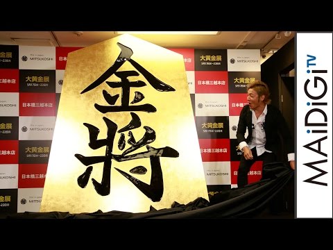 「大黄金展」では、純金将棋駒一式(2836万800円、税込み)と、高さ2メートルの金箔(きんぱく)貼り巨大将棋駒(2000万円、税抜き)を目玉に、仏具や縁起物など約1000点の黄金製品を展示、販売する。入場無料。22日まで。