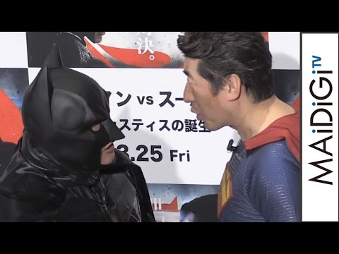 お笑いトリオ「ダチョウ倶楽部」の肥後克広さん、寺門ジモンさん、上島竜兵さんが3月1日、東京都内で行われた映画「バットマン vs スーパーマン ジャスティスの誕生」(ザック・スナイダー監督、25日公開)のイベントに登場。上島さんがバットマン、寺門さんがスーパーマンのコスプレ姿を披露した。