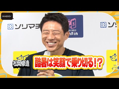 テニスプレーヤーの松岡修造さんが8月7日、東京都内で行われたソリマチグループの新CM・インボイス事業発表会に登場した。“熱い男”として知られる松岡さんは、酷暑を乗り切る方法について「表情から変えていくことを大事にしている」と語った。
