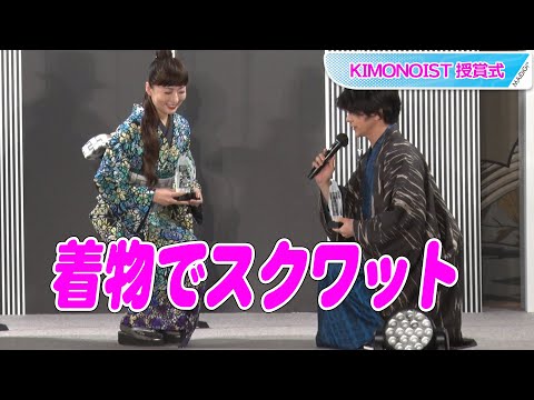 俳優の武田真治さんが11月9日、東京都内で行われた第1回「KIMONOIST(キモノイスト)」授賞式に出席。着物姿で、女優の松雪泰子さん、音楽家の横山剣さんとともにスクワットを披露した。