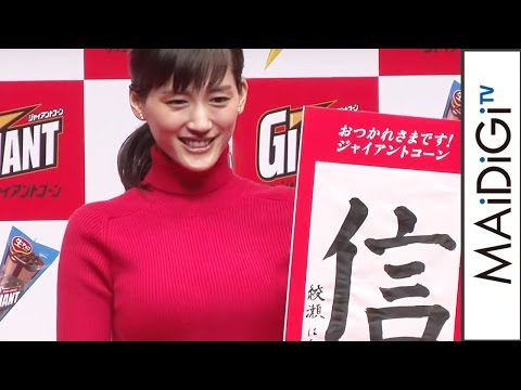 女優の綾瀬はるかさんが11月20日、東京都内で行われた江崎グリコの「ジャイアントコーン」のイベント「おつかれさまです!ジャイアントコーン贈賞式 2016」にプレゼンターとして出席。綾瀬さんは「ジャイアントコーン」をイメージした赤のハイネックのニットにロングスカート姿で登場し、受賞者をたたえた。