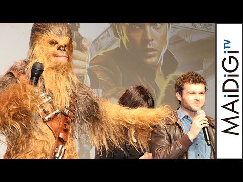 映画「ハン・ソロ/スター・ウォーズ・ストーリー」(ロン・ハワード監督、2018年6月29日公開)の会見が6月11日、東京都内で行われ、ハン・ソロ役のオールデン・エアエンライクさん、ハワード監督と、ソロの相棒のチューバッカが劇中の190歳の姿で出席した。