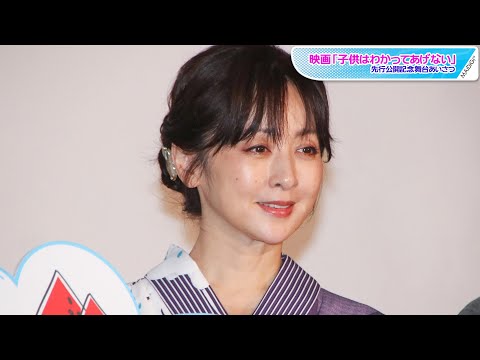 女優の斉藤由貴さんがこのほど、テアトル新宿(東京都新宿区)で行われた映画「子供はわかってあげない」(沖田修一監督、8月20日公開)のテアトル新宿先行公開記念舞台あいさつに登場した。紫を基調に、白い花やストライプが描かれた浴衣に、ビビッドな水色の帯を締めたシックかつ華やかな装い。まとめ髪でしっとりと着こなしていた。