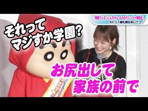 人気アニメ「クレヨンしんちゃん」の第30作となる劇場版最新作「映画クレヨンしんちゃん もののけニンジャ珍風伝(ちんぷうでん)」(橋本昌和監督)の大ヒット御礼舞台あいさつが5月1日、東京都内で行われ、ゲスト声優を務めた川栄李奈さん、お笑いコンビ「ハライチ」が登場した。