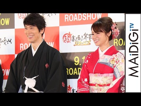 俳優の佐々木蔵之介さんと女優の深田恭子さんが6月16日、東京都内で行われた映画「超高速!参勤交代 リターンズ」(本木克英監督)の完成報告会見に登場。前作に続き、貧乏な湯長谷藩の藩主の内藤政醇(まさあつ)を演じた佐々木さんは、深田さんとの祝言シーンを振り返り、「姫(深田さん)を改めて見て、もう“走らなくていい”と思った。もうこのまま映画が終わってほしいと。野郎とドロドロになって走らなくてはいけないんですけど、祝言のシーンのまま、このままこの映画が終わってもいいと思ったくらい、美しくて、たまりませんでした」と語った。