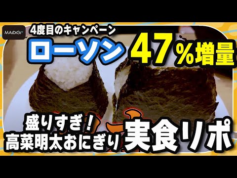 タレントの鈴木咲さんが2月4日から発売の「盛りすぎ!高菜明太おにぎり」(167円)を実食、“47%増量”をリポートした。