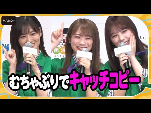 アイドルグループ「乃木坂46」の秋元真夏さん、山下美月さん、与田祐希さんが10月3日、東京都内で行われたJAグループ「国消国産」プロモーション・新CM記者発表会に出席した。