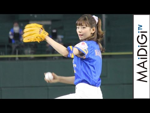 歌手で女優の西内まりやさんが6月27日、東京ドーム(東京都文京区)で開催されたプロ野球・福岡ソフトバンクホークス対千葉ロッテマリーンズの始球式に登場。西内さんは、ソフトバンクの選手と同じユニフォームを着てファンが応援する「鷹の祭典2016」の青のユニフォームに白のパンツ姿で現れ、キャッチャーをまっすぐ見すえて投球したが、ボールは左にそれ、グラウンドを数回バウンドする“暴投”。ソフトバンク戦の始球式は2度目でノーバウンド投球に成功していない西内さんは、今回も“ノーバン”とはならず思わずその場に崩れ落ちてしまい、恥ずかしそうに苦笑いを浮かべていた。