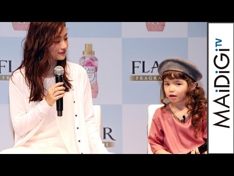 女優の石原さとみさんが9月8日、東京都内で行われた花王の柔軟剤「フレア フレグランス」の新商品発表会に出席。「発表会には、新CMで共演した子役のアイラ・ローズちゃんも登場。
