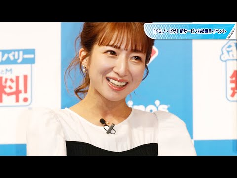 タレントの辻希美さんが3月23日、宅配ピザチェーン「ドミノ・ピザ」の新サービス発表会に出席した。シンプルなモノトーンのワンピースに黒の厚底サンダル、ポニーテールに黒のリボンを着けたガーリーな装いだった。
