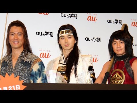 俳優の松田翔太さん、桐谷健太さん、濱田岳さんが1月19日、東京都内で行われた「au」の新商品・新サービス発表会に登場。3人は昔話の“3人の太郎”をモチーフにした同社の新CMシリーズで、松田さんが桃太郎、桐谷さんが浦島太郎、濱田さんが金太郎を演じ、話題を集めている。この日は、それぞれの役の衣装で登場した。MCは、フリーアナウンサーの平井理央さんが務めた。