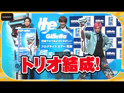 お笑いコンビ「EXIT」のりんたろー。さん、兼近大樹さんが9月1日、東京都内で行われた「ジレット プログライド エアー 電動新製品発表会」に登場した。