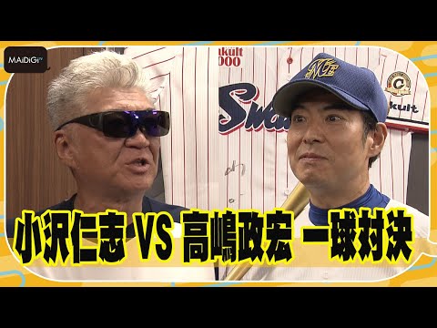 俳優の小沢仁志さんと高嶋政宏さんが8月3日、明治神宮野球場(東京都新宿区)で行われた映画「野球部に花束を」(11日公開)のヤクルトスワローズ×中日ドラゴンズ戦のセレモニーピッチイベントに登場。小沢さんがピッチャー、高嶋さんがバッターで一球対決を行った。