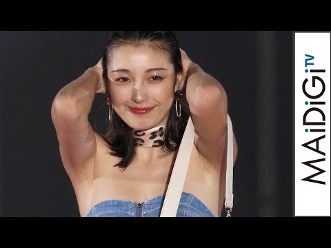木下さんはファッションブランド「ROYAL PARTY(ロイヤルパーティー)」のステージに、デコルテを全開にしたベアトップのデニムワンピース姿で登場。ヌードカラーのショートブーツ、レオパード柄のスカーフ、ビッグサイズのイヤリングを合わせ、美背中も見せつつランウエーを歩いた。「MURUA(ムルーア)」のステージではショート丈の黒のキャミソールとパッチワーク風のロングスカートを合わせ、おなかをちら見せした夏の装いで投げキスしたり、手を振ったりして観客を喜ばせていた。