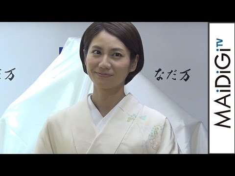 女優の松下奈緒さんが6月20日、東京都内で行われた日本料理店「なだ万 高輪プライム」のオープン記念発表会に出席。松下さんは淡い桜柄の着物姿で登場した。