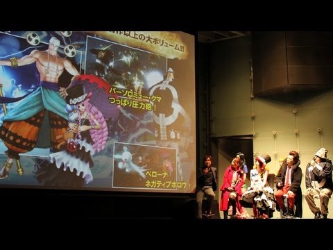 発表会には、連載誌「週刊少年ジャンプ」の瓶子吉久編集長も駆けつけ、原作者の尾田栄一郎さんの色紙とコメントを披露した。尾田さんは、前作のゲームが100万本を突破したことを祝う色紙とともに「海賊無双2のデモを見た僕と担当の反応。『スゴッ!!強っ!!ズルい!!!エロッ!!!あははははは!!あははははは!!あー爽快っすねコレは。』です。相変わらず作り手まで楽しんじゃってますね。発売が楽しみです」とコメントを寄せた。コーエーテクモゲームスの鯉沼久史プロデューサーは「尾田先生のお墨付きをいただいた」と喜び、マンガのキャラクター、バーソロミュー・クマのコスプレで登場したバンダイナムコゲームスの中島光司プロデューサーは「前作に引き続き、さらにスタッフが『ワンピース愛』をマックスにして開発しました。ぜひファンに触っていただきたい」と熱くアピールした。