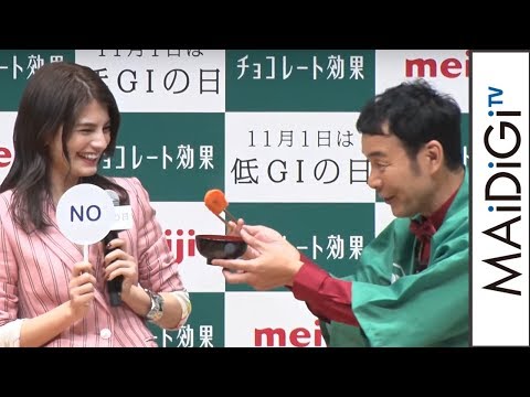 モデルのマギーさん、お笑いトリオ「ダチョウ倶楽部」の肥後克広さん、上島竜兵さんが10月31日、東京都内で行われた「11月1日は低GIの日」制定記念PRイベントに出席した。