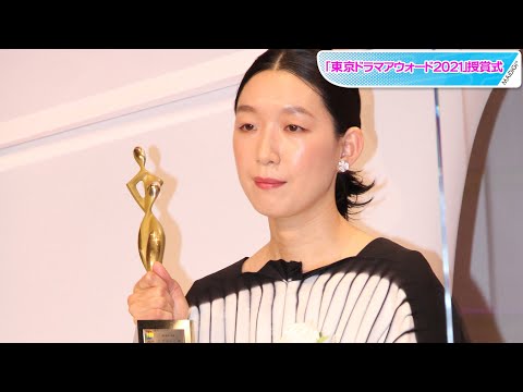優れたテレビドラマを表彰する「東京ドラマアウォード2021」の授賞式が10月27日、東京都内で開かれ、今年1月期放送の「俺の家の話」(TBS系)で助演女優賞に選ばれた女優の江口のりこさんが登場した。