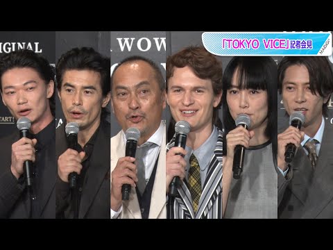 WOWOW初のハリウッド共同制作ドラマシリーズ「TOKYO VICE」の記者会見が4月6日、東京都内で行われ、米俳優アンセル・エルゴートさんのほか、日本人キャストの渡辺謙さん、菊地凛子さん、伊藤英明さん、笠松将さん、山下智久さんが出席した。