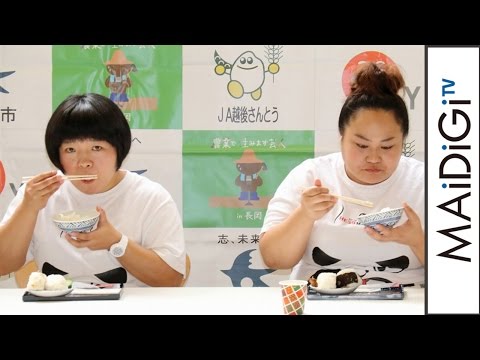 【動画】ノンスタ井上、おかずクラブが「よしもと芸人米」に舌鼓 「よしもと芸人米」発表会見2