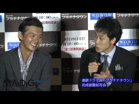 俳優の大泉洋さんが8月17日、WOWOWで19日にスタートする連続ドラマW「プラチナタウン」の東京都内で開かれた第1話完成披露試写会に、共演の檀れいさん、渡部篤郎さんとともに出席。