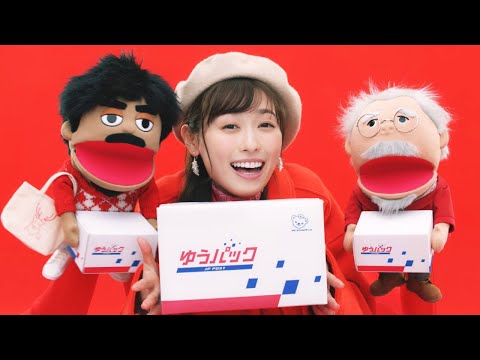 ニットセーター姿の福原さんが、パペットの“おじいちゃん”と“パパ”をテンポ良く登場させながら、クリスマスの定番曲「We Wish You a Merry Christmas」のメロディーにのせ、ゆうパックの便利さを楽しく歌う。終盤には、赤いコートと可愛らしいベレー帽のクリスマスシーズンにぴったりなお出かけスタイルになった福原さんも登場する。