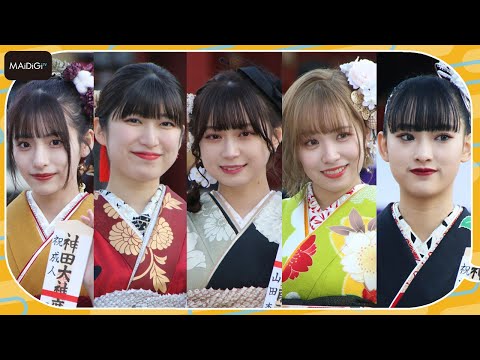 アイドルグループ「AKB48」の吉田華恋さんら今年度20歳のメンバー5人が1月9日、神田明神(東京都千代田区)で行われた「AKB48 二十歳のつどい」記念撮影会に出席し、華やかな振り袖姿を披露した。