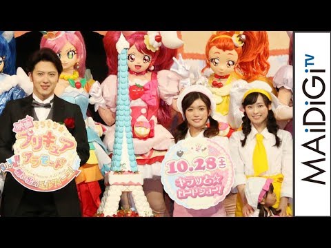 イベントには、立神あおい(キュアジェラート)役の村中知さん、琴爪ゆかり(キュアマカロン)役の藤田咲さん、剣城あきら(キュアショコラ)役の森なな子さん、キラ星シエル(キュアパルフェ)の師匠のパティシエのジャン・ピエール・ジルベルスタインの声優を務める尾上松也さんも登場した。