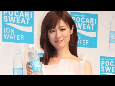 女優の深田恭子さんが4月4日、東京都内で行われた新たな清涼飲料「ポカリスエット イオンウォーター」の新CM発表会に世界一軽い素材のドレスを身にまとって登場。
