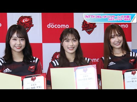 アイドルグループ「NMB48」の渋谷凪咲さん、加藤夕夏さん、原かれんさんが10月14日、大阪市内で開催された、ラグビーチーム「NTTドコモレッドハリケーンズ大阪」の公式アンバサダー就任式に出席した。