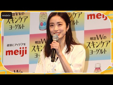 俳優の上戸彩さんが3月25日、東京都内で行われた「明治Wのスキンケアヨーグルト」新CM記者発表会に出席。白地に色とりどりの花がちりばめられた春らしいワンピース姿で登場し、輝く美貌で会場を魅了した。