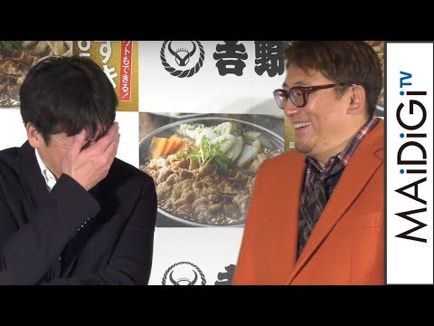 映画「銀魂」や「斉木楠雄のΨ難(さいきくすおのサイなん)」の福田雄一監督と俳優の佐藤二朗さんが10月30日、東京都内で行われた吉野家の「牛すき鍋膳」発表会に出席。