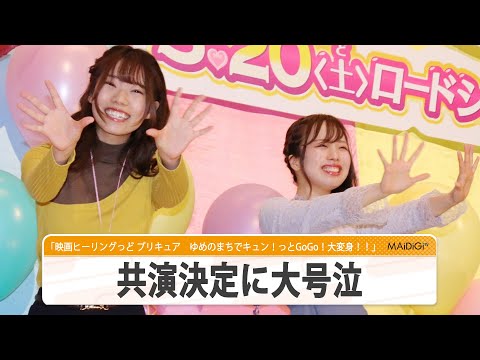 人気アニメ「プリキュア」シリーズの第17弾「ヒーリングっど プリキュア(ヒープリ)」(ABCテレビ・テレビ朝日系)の劇場版「映画ヒーリングっど プリキュア ゆめのまちでキュン!っとGoGo!大変身!!」(中村亮太監督、3月20日公開)の完成披露舞台あいさつが3月14日、丸の内TOEI(東京都中央区)で開催され、キュアグレース/花寺のどか役の悠木碧さん、キュアスパークル/平光ひなた役の河野ひよりさん、キュアフォンテーヌ/沢泉ちゆ役の依田菜津さんら声優陣が登場した。劇場版には、2007年2月~2009年1月に放送されたシリーズ第4、5弾「Yes!プリキュア5」「Yes!プリキュア5GoGo!」のプリキュアが登場することも話題になっている。河野さんは「5」「5GoGo!」と共演することが告げられた時、大号泣したといい「『ヒープリ』でよかった!」と喜びを爆発させた。