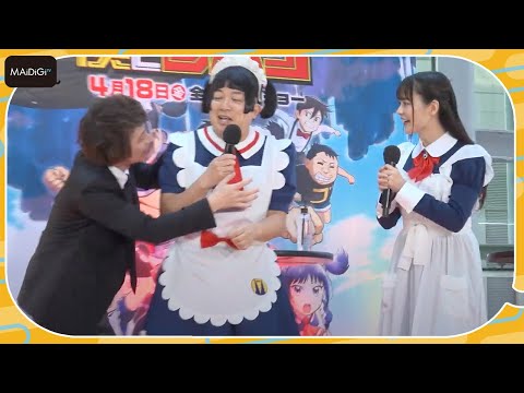 「週刊少年ジャンプ」(集英社)で連載中の宮崎周平さんの人気ギャグマンガが原作のアニメ「僕とロボコ」の劇場版「劇場版『僕とロボコ』」の公開直前イベントが4月6日、東京都内で行われ、ロボコ役のお笑いコンビ「チョコレートプラネット」松尾駿さん、ボンド役の津田美波さん、ガチゴリラ役の置鮎龍太郎さん、ロボコ(ラブコメの世界線)役の上坂すみれさんが登場した。