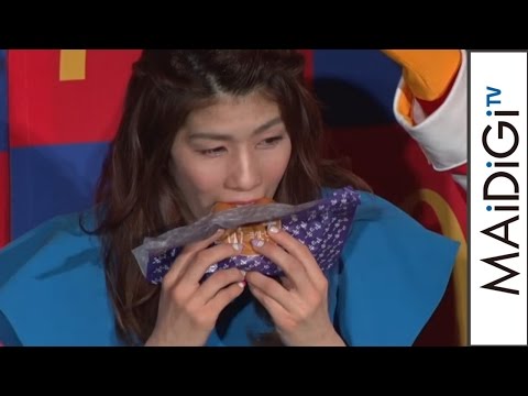 レスリングの吉田沙保里選手が2月21日、東京都内で行われたマクドナルドの「ハンバーガー4D映画」と新商品発表会に出席。吉田選手はブルーのミニのワンピース姿で登場した。