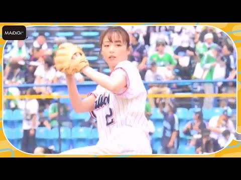 フリーアナウンサーの宇垣美里さんが6月8日、明治神宮野球場(東京都新宿区)で行われたプロ野球・東京ヤクルトスワローズ対福岡ソフトバンクホークス戦の始球式に登場した。