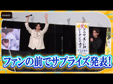 この日は、シーズン2が2月7日からMBS/TBSドラマイズム枠で放送されることが発表された。シーズン2では、高校卒業後、大学生となった平良、新人俳優として活躍する清居の「2人のその後」が展開される。「美しい彼~special edit version~」は3月10日から1週間限定で公開。4月7日には「劇場版 美しい彼~eternal」が全国の劇場で公開される。