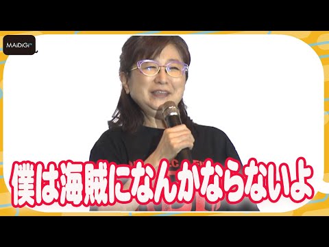 尾田栄一郎さんの人気マンガ「ONE PIECE(ワンピース)」の新作劇場版アニメ「ONE PIECE FILM RED」(谷口悟朗監督)の大ヒット舞台あいさつが9月18日、梅田ブルク7(大阪市北区)で行われ、ルフィ役の田中真弓さん、ウソップ役の山口勝平さんが登場した。