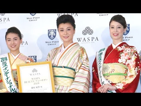 発表会には、WASPAサポーターとして「2016ミス・インターナショナル」日本代表の山形純菜さん、同準ミスの増田ションフェルド茉莉さん、下村彩里さん、藤元さやかさん、川口紗希さんも登場。藤原さんは山形さんらに「本当に聡明で美しくて」と目を細めると、「この間の世界大会(2015ミス・インターナショナル)でも日本代表の中川愛理沙さんが、桜満開の着物で、とても印象的だった、。やはり日本の女性は着物がしっくりくる」と話した。